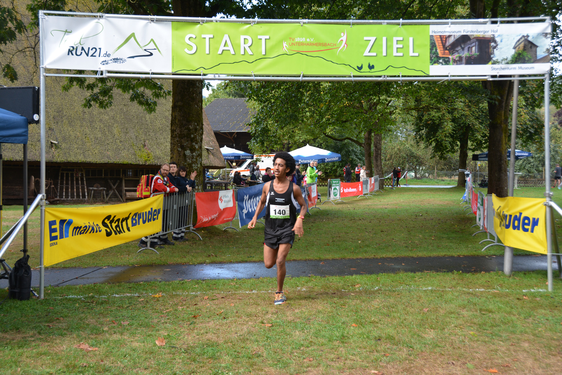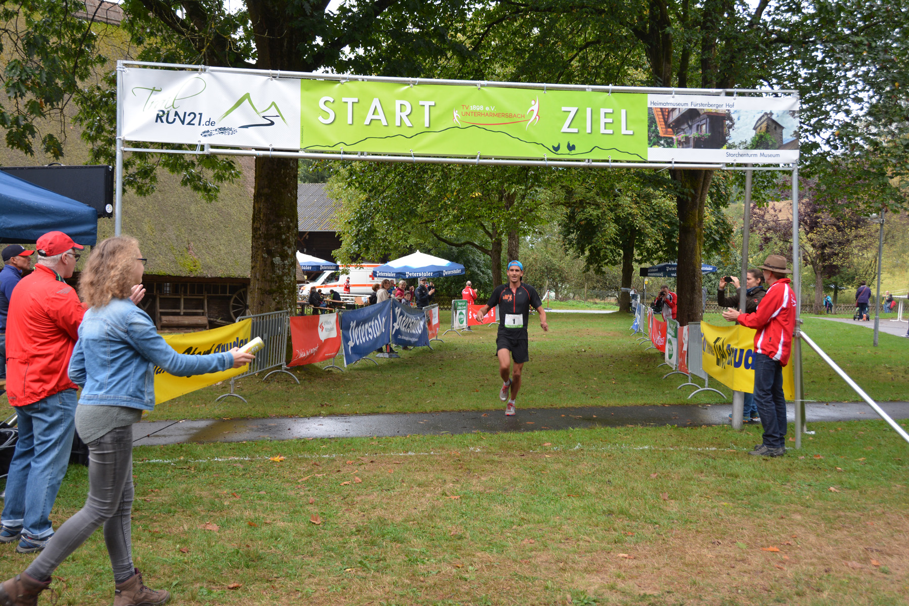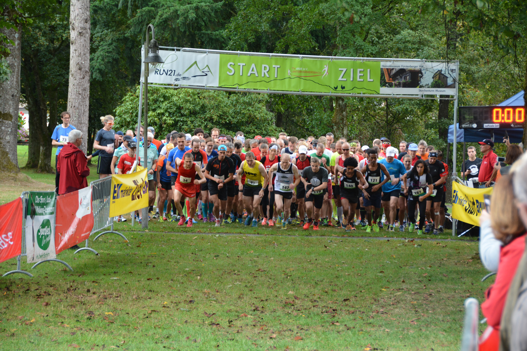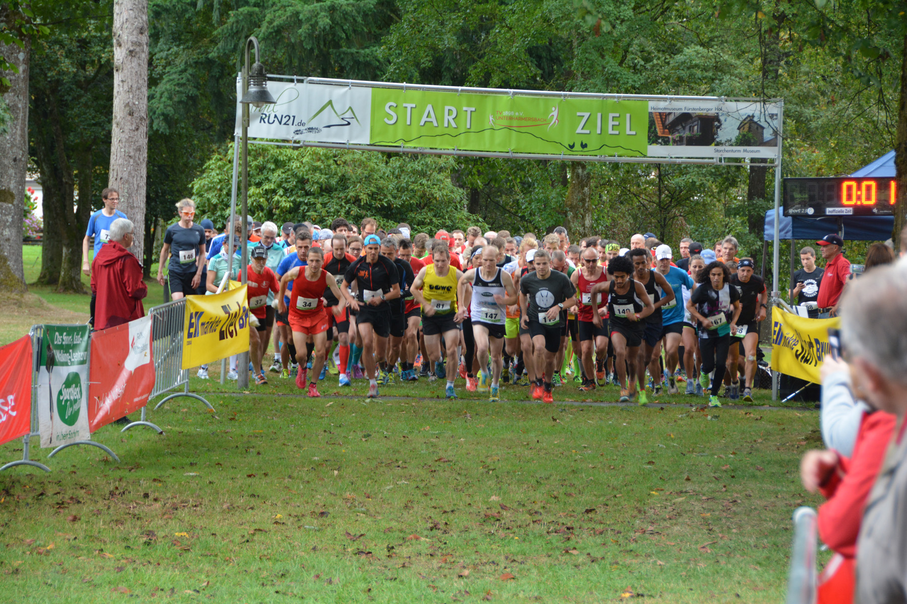 Pünktlich um 10.30 Uhr fiel der Startschuss für die insgesamt 120 Läuferinnen und Läufer. Eine Klasse für sich war dabei der fünffache Deutsche Berglauf-Meister und Vorjahressieger Timo Zeiler. Schon früh setzte er sich vom Läuferfeld ab, lief einen ungefährdeten Start-Ziel-Sieg und stellte in der Zeit von 1:20:05 Stunden einen neuen Streckenrekord auf. Erst über vier Minuten später lief der Zweitplatzierte Yemane Gebrezgher von der LC Breisgau über die Ziellinie. Théophile Haas vom TV Biberach erkämpfte sich in starken 1:26:05 den dritten Platz.
