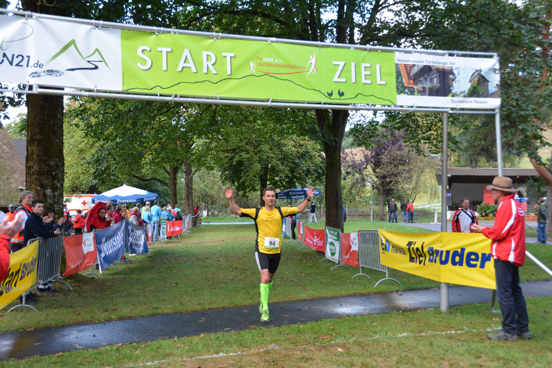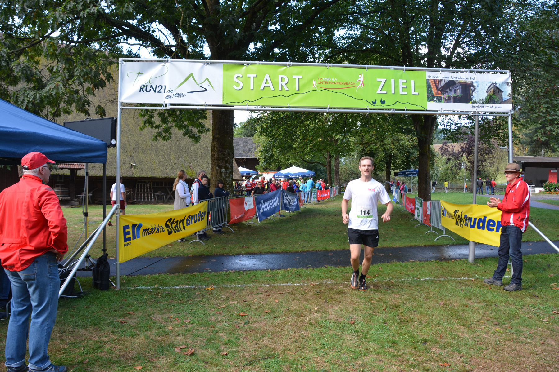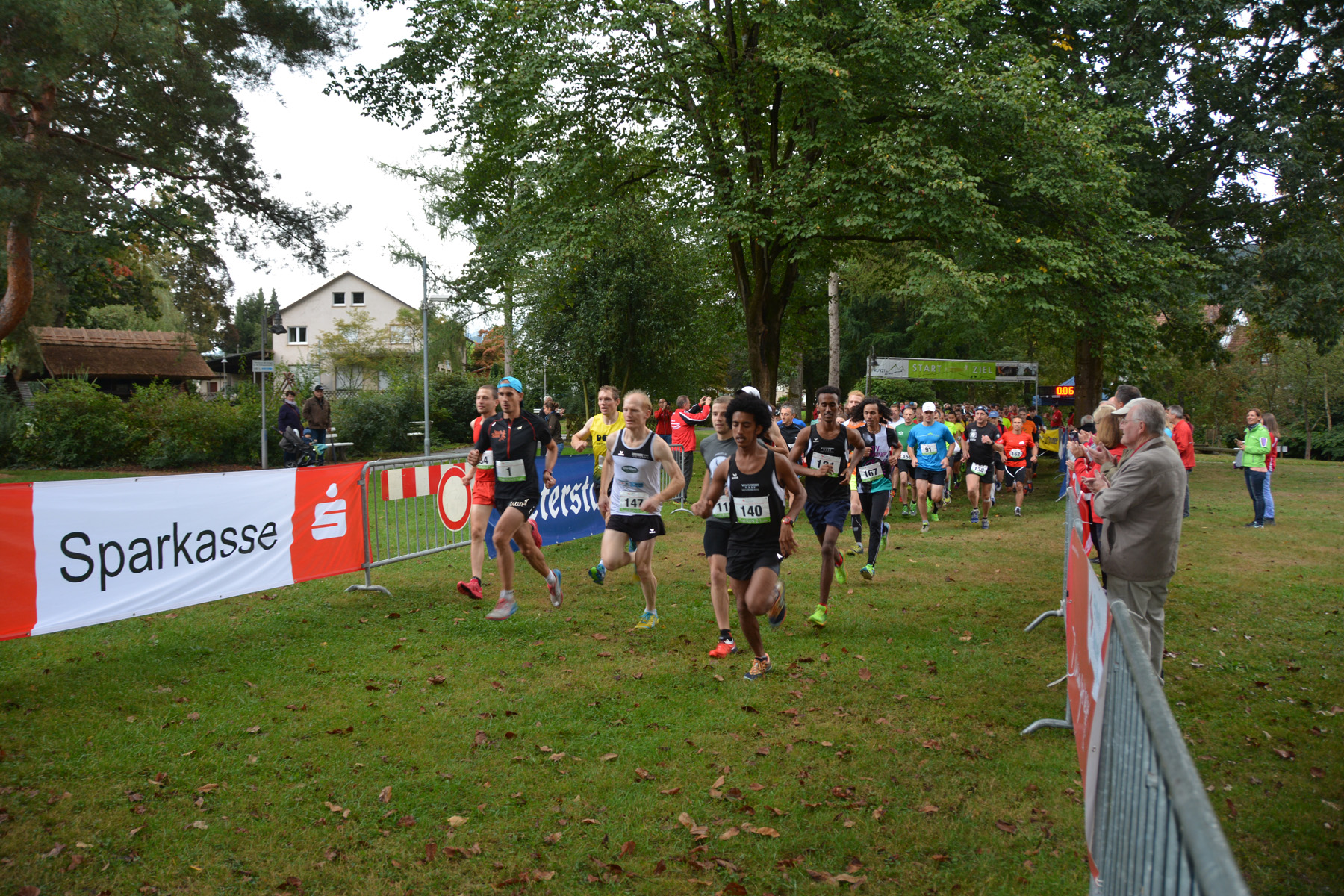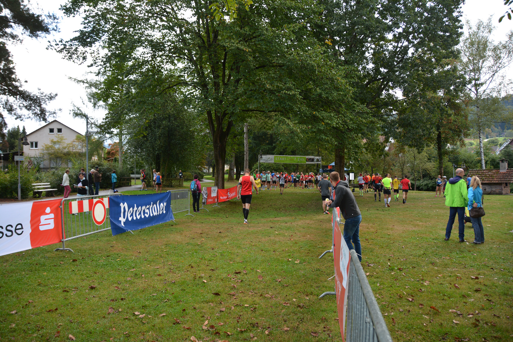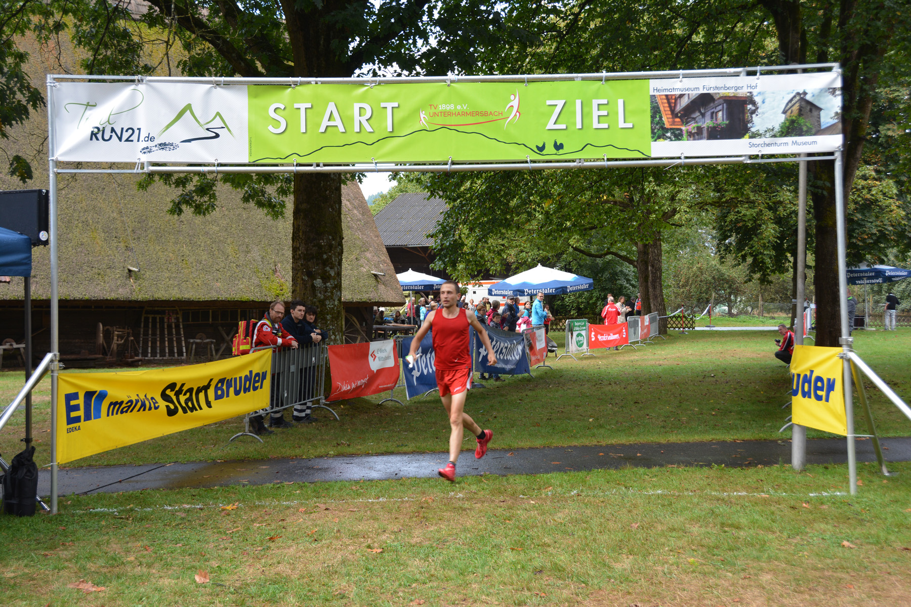 Pünktlich um 10.30 Uhr fiel der Startschuss für die insgesamt 120 Läuferinnen und Läufer. Eine Klasse für sich war dabei der fünffache Deutsche Berglauf-Meister und Vorjahressieger Timo Zeiler. Schon früh setzte er sich vom Läuferfeld ab, lief einen ungefährdeten Start-Ziel-Sieg und stellte in der Zeit von 1:20:05 Stunden einen neuen Streckenrekord auf. Erst über vier Minuten später lief der Zweitplatzierte Yemane Gebrezgher von der LC Breisgau über die Ziellinie. Théophile Haas vom TV Biberach erkämpfte sich in starken 1:26:05 den dritten Platz.