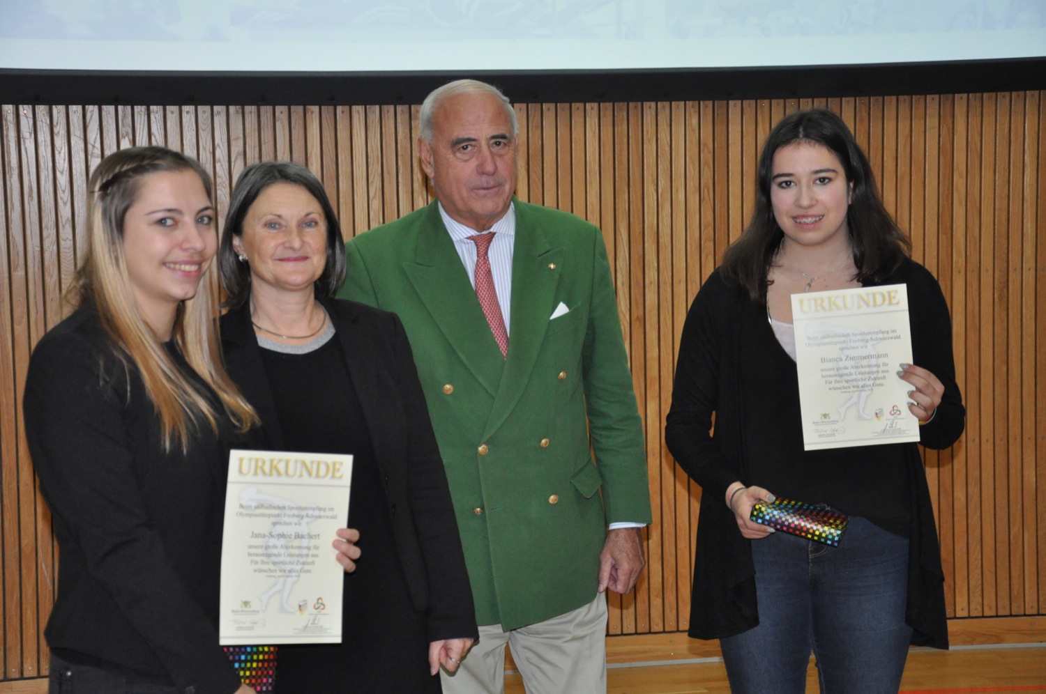 Vergangene Woche stand für Bianca Zimmermann wieder eine besondere Ehrung bevor. Der Badische Sportbund und das Regierungspräsidium Freiburg luden wieder verdiente Sportler zum Olympiastützpunkt Freiburg-Schwarzwald ein, um sie für ihre herausragenden Leistungen in ihrer Sportart zu ehren. Für die Goldmedaille im Weltpokal bekam auch Bianca Zimmermann (KSC Önsbach) eine Einladung, ebenso wie Jana-Sophie Bachert (SKV Bonndorf), welche mit der U23-Nationalmannschaft die Bronzemedaille bei der Weltmeisterschaft gewann. Sabine Spitz und Hans-Ulrich Wiedmann moderierten die Veranstaltung, die Ehrungen wurden von BSB Präsident Gundolf Fleischer und Regierungspräsidentin Bärbel Schäfer vollzogen. Unter anderem wurden auch Christina Obergföll und Nils Petersen aufgerufen, insgesamt waren es über 100 Sportler welche eine Urkunde entgegennehmen durften.