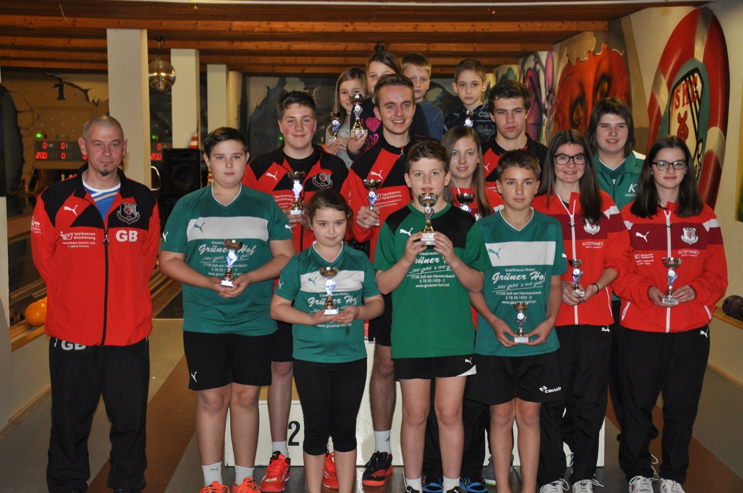 In zwei Durchgängen galt es für die Sportkegler über alle Altersklassen sich um die Treppchenplätze und somit für die Startplätze für die Bezirksmeisterschaften zu qualifizieren. Der 1. Durchgang wurde jeweils in den Trainingseinheiten unterhalb der Woche ausgespielt. Der Finalspieltag wurde dann für alle am vergangenen Sonntag ausgetragen. U10 Mädels: 1. Josephine Moser (375 Kegel), 2. Miriam Helfer (321). U10 Jungs: 1. Paul Schondelmaier (455), 2. Mike Richter (200). U14 Mädels: 1. Sofia Serrer (918), 2. Celina Wacker (763). U14 Jungs: 1. Fabian Zimmermann (1042), 2. Marvin Wacker (1008), 3. David Isenmann (875). U18 Mädels: Patricia Buchholz (1063), 2. Luisa Fehrenbach (984), 3. Christina Brandenbusch (885). U18 Jungs: 1. Marius Pfeifer (1091), 2. Nicolas Boschert (1026), 3. Mathias Prinzbach (953). U23 Junioren: 1. Fabian Boschert (1050). Frauen: 1. Jutta Zimmermann (1046), 2. Katrin Schondelmaier (1020), 3. Natascha Beck (982). Männer: 1. Markus Wacker (1131), 2. Michael Lehmann (1125), 3. Wolfgang Bollack (1100), 4. Maurice Sobott (550), 5. Manuel Malek (516 Kegel). Seniorinnen A: 1. Sonja Lehmann (391). Senioren A: 1. Gerhard Schöner (1146), 2. Georg Brosemer (1114), 3. Wolfgang Lehmann (1094), 4. Franz Dörr (1077), 5. Armin Kesel (1057). Seniorinnen B: 1. Barbara Schondelmaier (1039). Senioren B: 1. Franz Schultheiß (1003), 2. Hansjörg Rosewich (905). Die Bezirksmeisterschaften werden dann Ende Januar stattfinden.