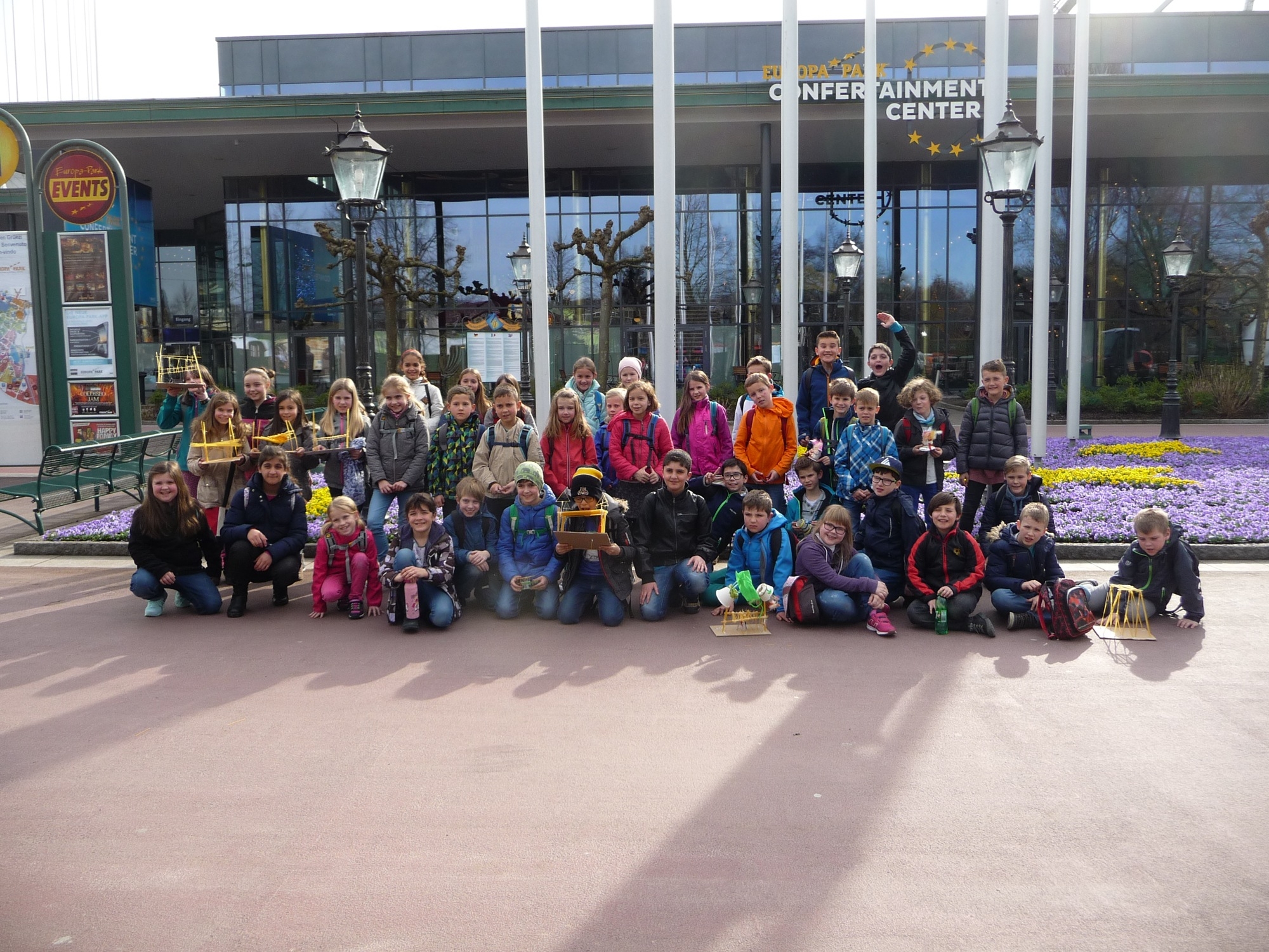 Am vergangenen Montag fuhren 42 Drittklässlerinnen der Grundschule Unterharmersbach nach Rust, um sich im Europapark mit ihren französischen Freunden aus Stockfeld zu treffen. Während verschiedener Bastelblöcke, bei dem unter anderem Brücken aus Spaghettis entstanden und zwei Shows von Joachim Lerch, in denen er zum Beispiel zeigte »was Papier alles kann«, konnten sich die Kinder wieder ein Stück näher kommen. Auch das Mittagessen, das Europapark-Chef Mack vom Salat bis zum Dessert spendierte, trug zu einem perfekten Tag bei.