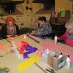 Anschließend war Teamarbeit gefragt. Alle Helferinnen setzten ihre Aufgaben gekonnt in die Tat um. Das verschiedene Grün wurde sortiert und zugeschnitten, um große und kleine Palmen damit zu zieren. Ebenfalls muss­ten verschiedene Papierfarben gefaltet, geschnitten und geklebt werden.
