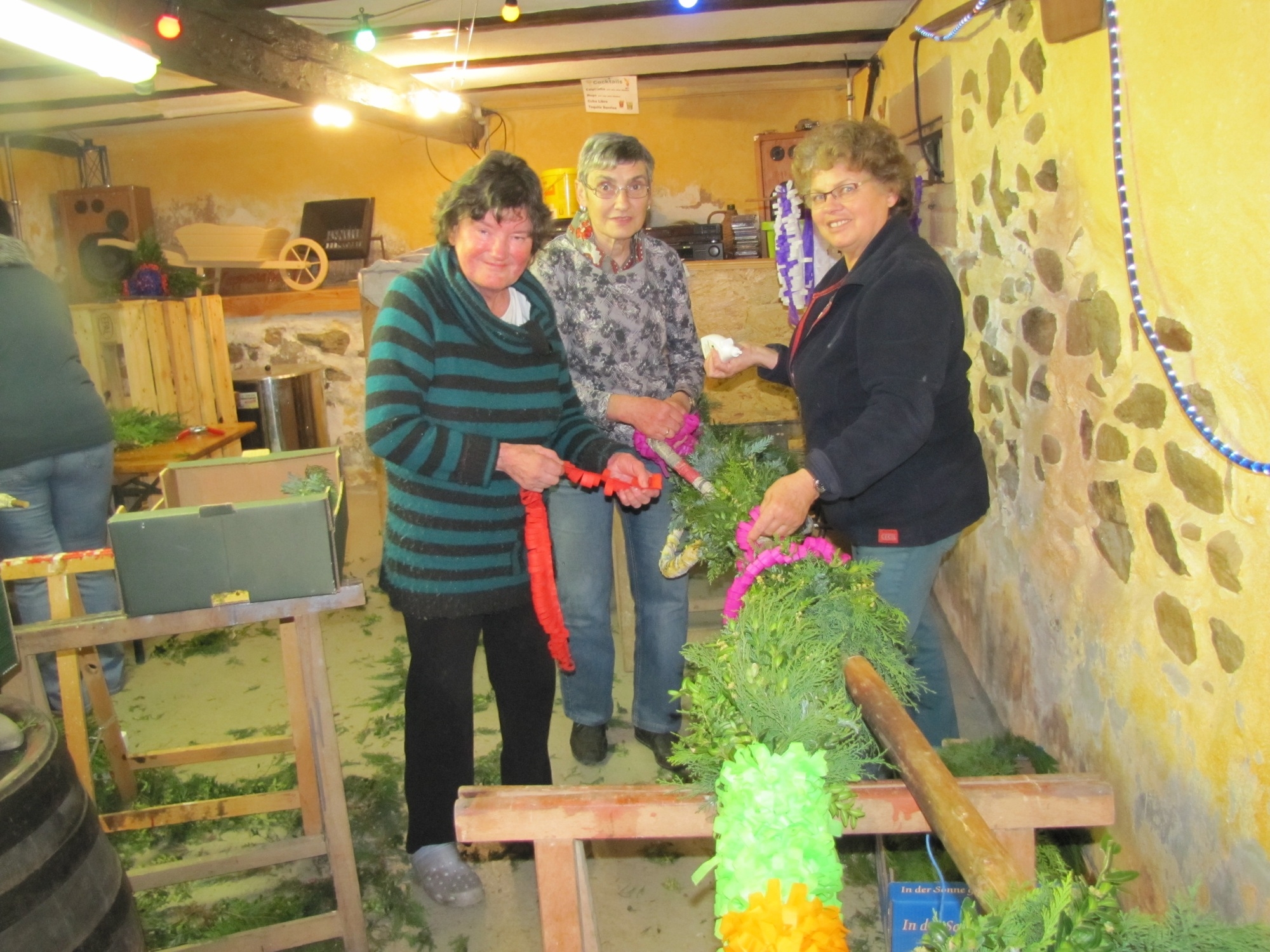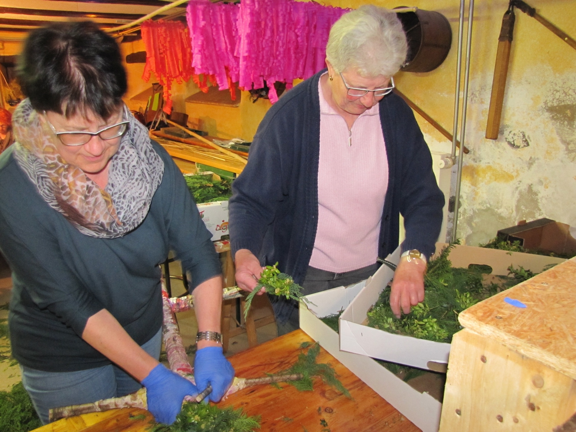 Wichtig war dabei, dass genügend Grünzeug wie Buchs und Fesen zum Arbeiten vorhanden waren. Dabei dankte die Organisatorin Claudia Feuer sowohl Agnes Isenmann als auch Achim Willmann für die Unterstützung. Sie hoffe, dass es auch im nächsten Jahr wieder liebe Menschen gibt, die das benötigte Material zur Verfügung stellen.