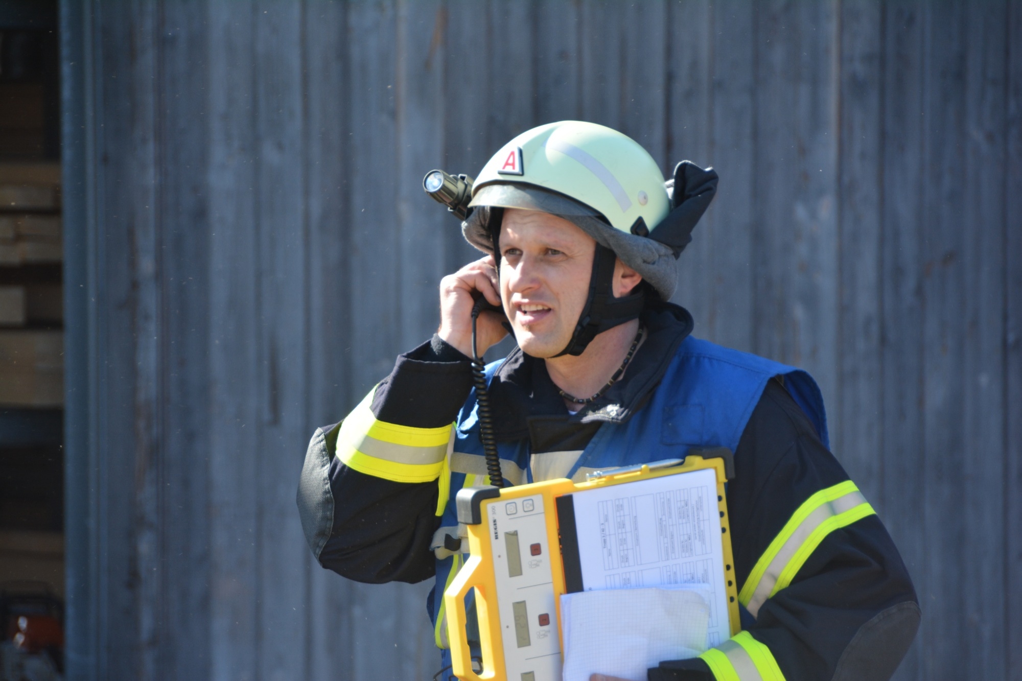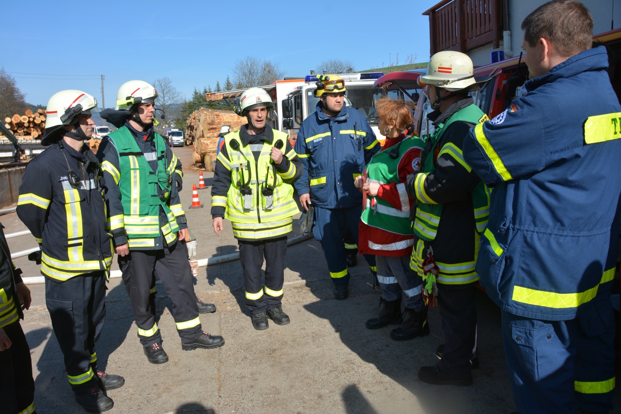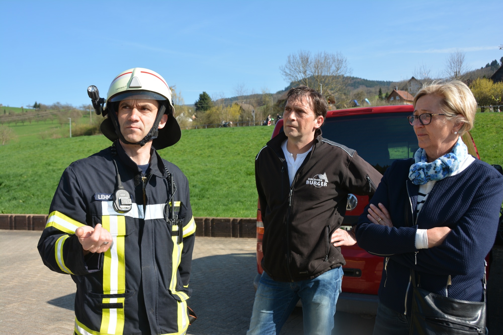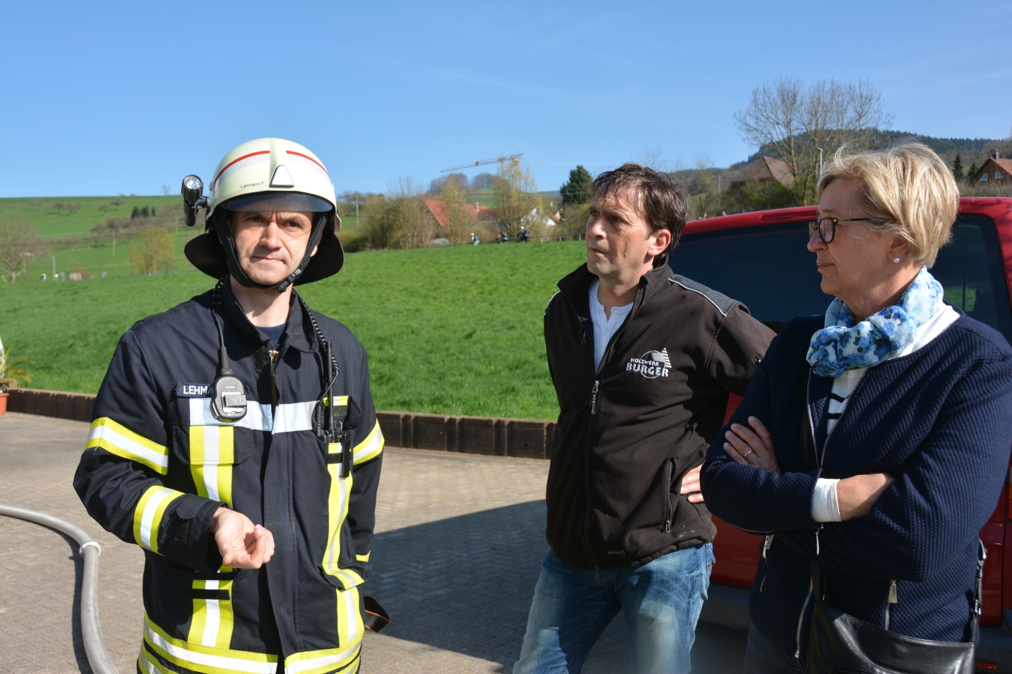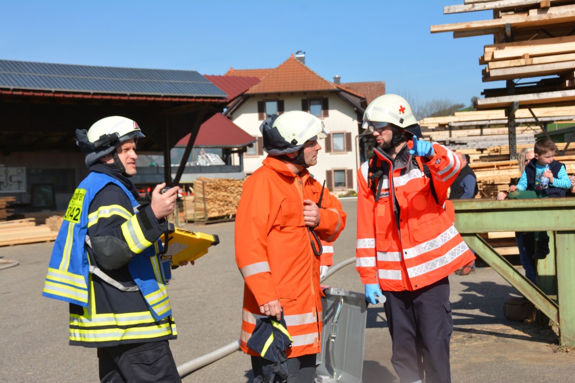 So üben die Kameraden bei der Frühjahrsübung nicht nur die notwenigen Handgriffe und die Zusammenarbeit zwischen den einzelnen Abteilungen, sondern gewinnen auch wertvolle Ortskenntnisse. Inhaber Bernd Burger informiert, dass für das Sägewerk ein Brandschutzplan erstellt wurde, wo unter anderem die Wasserentnahmestellen am Talbach und die Lage der Hydranten beschrieben ist. Bei der Frühjahrsübung gibt dieser den Einsatzkräften wichtige Hinweise – und natürlich erst recht im wirklichen Ernstfall. So ist die Familie Burger froh, dass ihr Sägewerk nach längerer Zeit nun wieder einmal als Übungsobjekt von der Feuerwehr ausgewählt wurde.