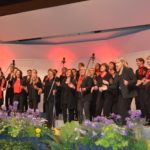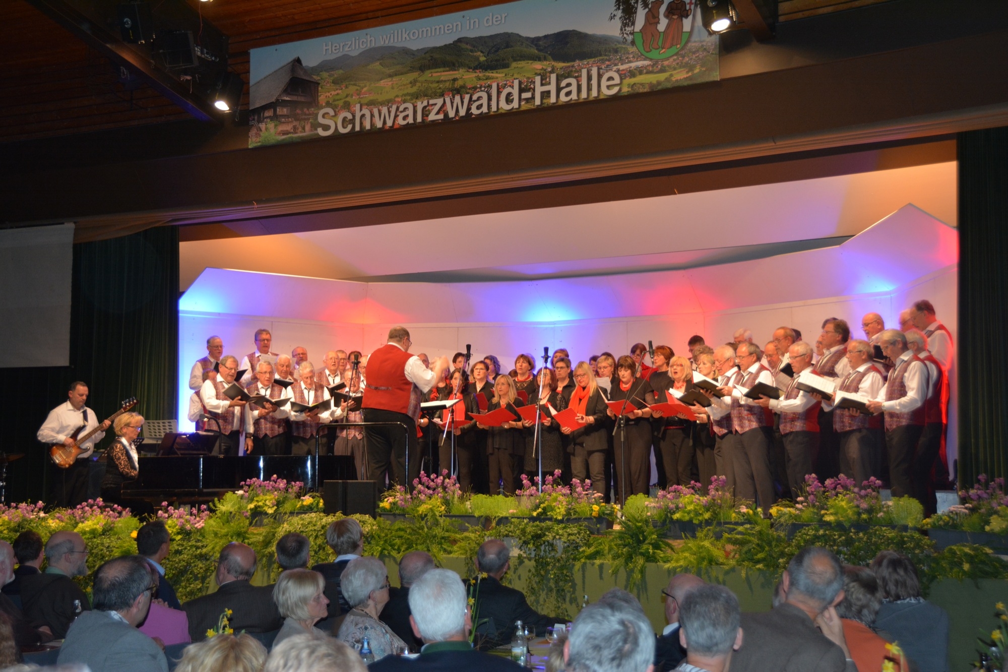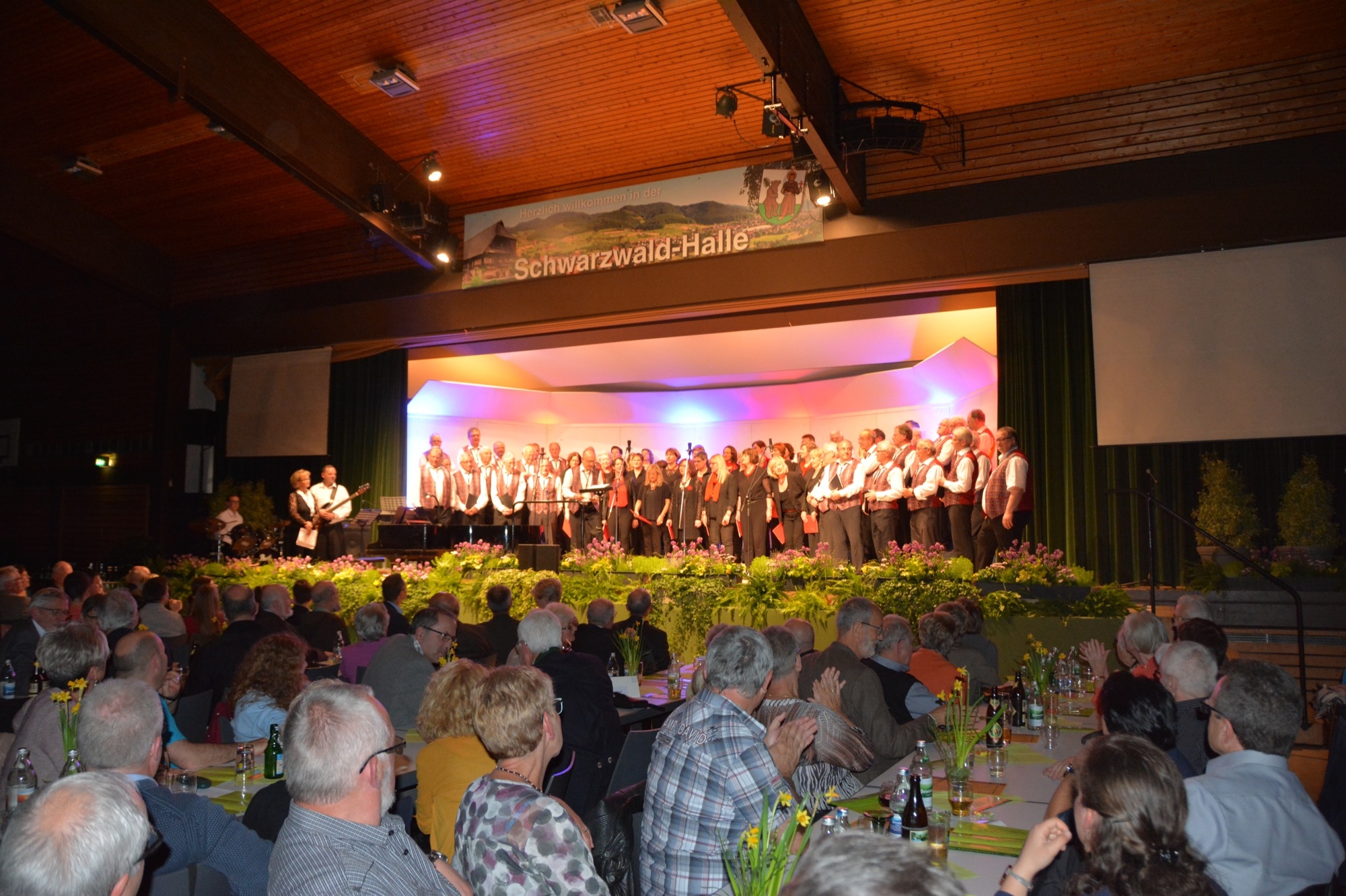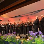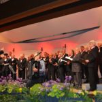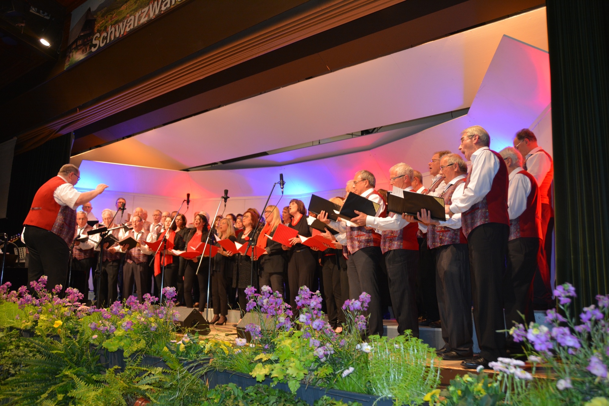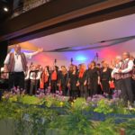 Zum großen Schlussbild verschmolzen »Der Männerchor«, die »CanTanten« und das Begleitensemble zur »Unterharmersbacher Chorgemeinschaft«. Mit dem bayrischen Volkslied »Da draußn im Wald« und »Wo die Sonne scheint« boten die Sängerinnen und Sänger unter der Gesamtleitung von Thomas Dreher nochmals große Klangvielfalt. Zuvor hatte »Der Männerchor« mit »So leb dein Leben« und »Ich war noch niemals in New York« das Fernweh geweckt und die Konzertbesucher zum Klatschen mit Mitsingen animiert. Die Begeisterung am Gesang vereinte die über 70 Akteure auf der Bühne und die über 600 Zuhörer im Saal und ließ das Osterkonzert 2017 wieder zu einem freudigen Konzerterlebnis werden.