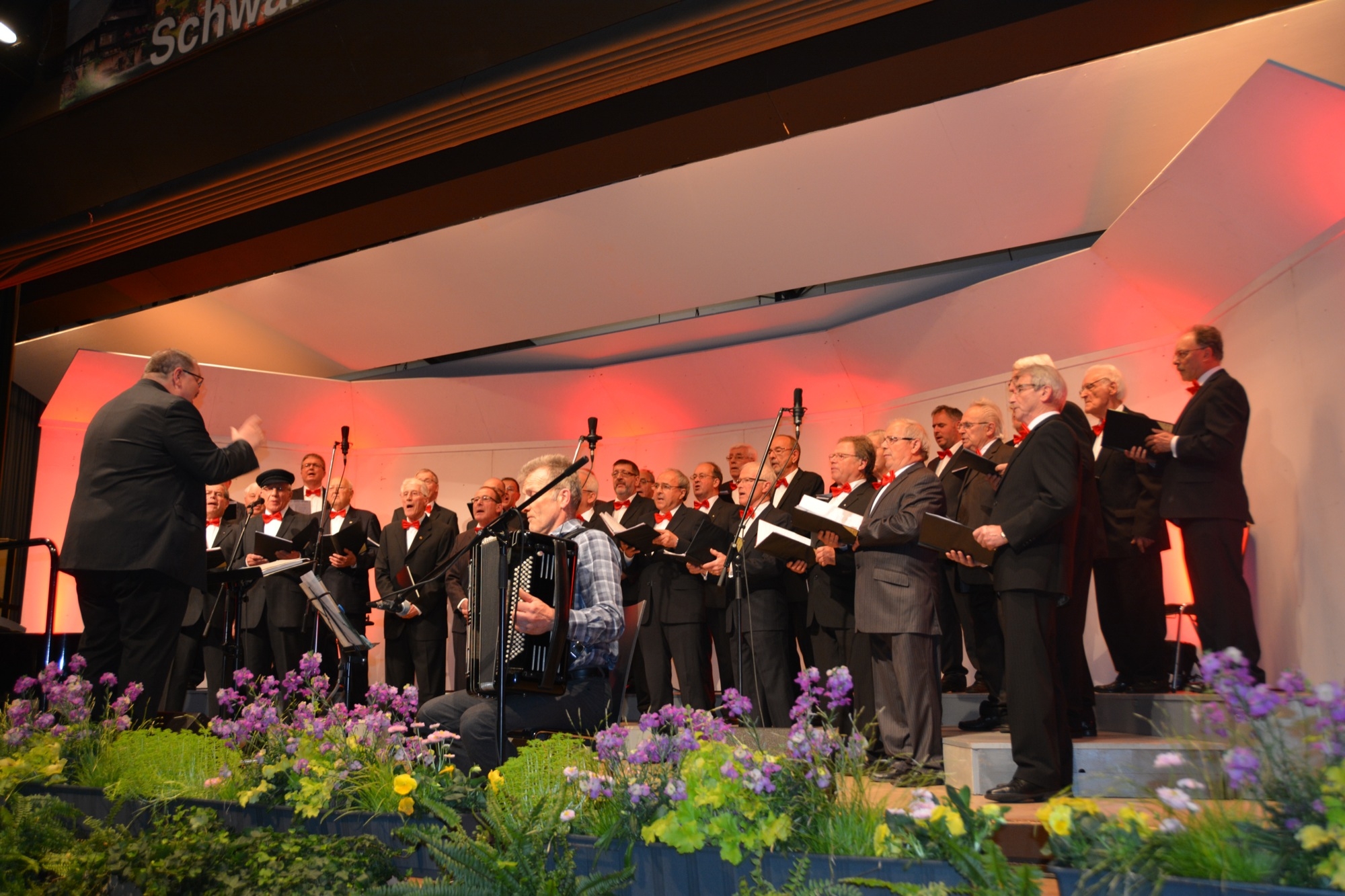 Den ersten Konzertteil des facettenreichen Osterkonzerts bildete »Der Männerchor« MGV »Liederkranz« Unterharmersbach mit einer musikalischen Reise von Hamburg bis nach Baden und Bayern. Auch der große Chor trägt nun schon seit elf Jahren die musikalische Handschrift von Dirigent Thomas Dreher. Er hat die 37 Männerstimmen zu einem harmonischen Klangkörper auf hohem musikalischem Niveau vereint. Der Chor überzeugte bei seinem Vortrag erneut mit exakt abgestimmten Einsätzen, gekonnten Rhythmus- und Tempowechseln sowie nuancenreichen Klangbildern.