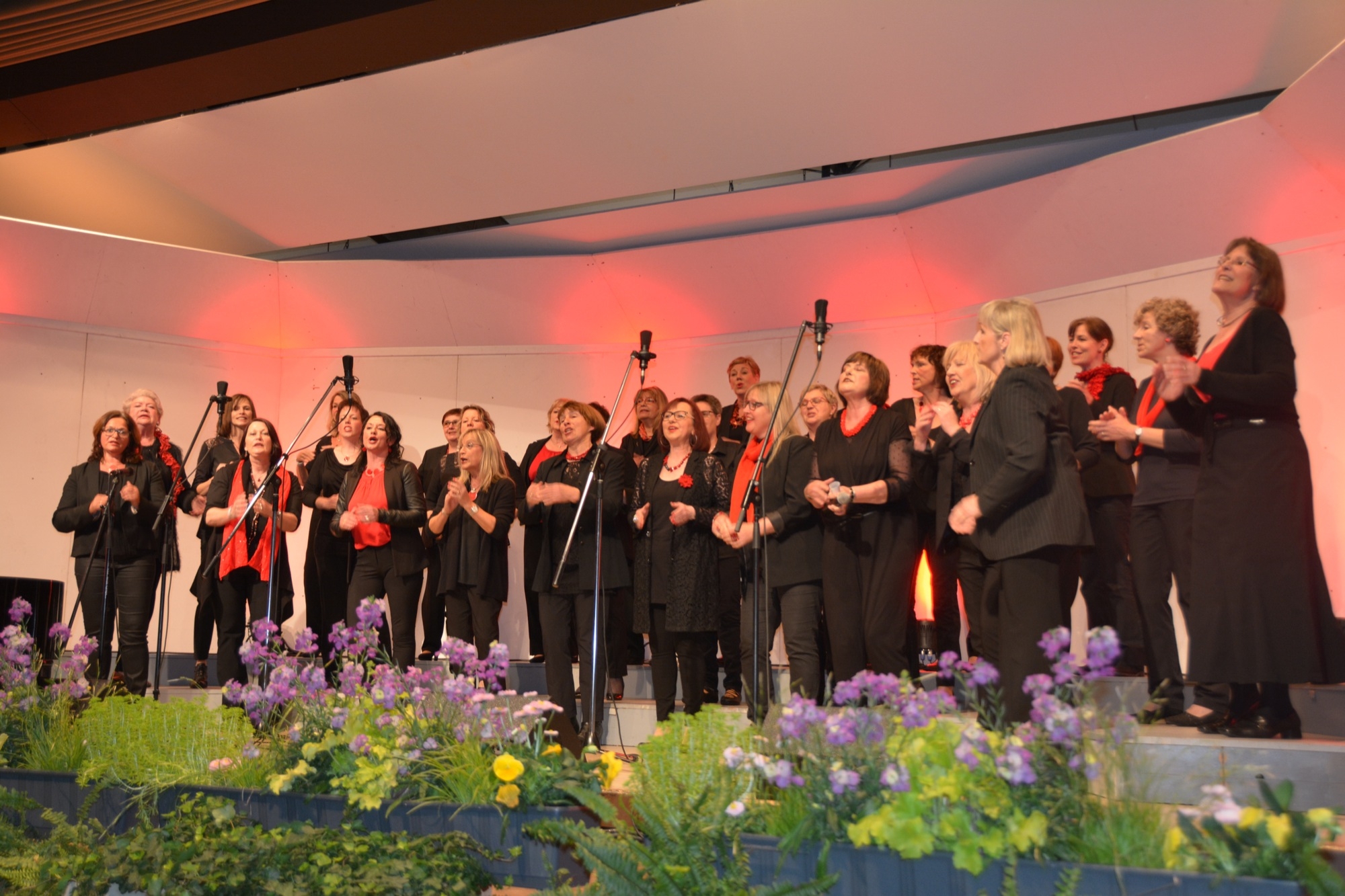 Mit dem französischen Lied »Voi sur ton chemin« aus dem Film »Die Kinder des Monsieur Mathieu « präsentierten die »CanTanten« unter der Leitung vom Dirigentin Bärbel Neunzig zum Auftakt eines ihrer Lieblingslieder. Der Frauenchor überzeugte wie zuvor der Männerchor mit gesanglichem Können, klarer Aussprache und der Freude am gemeinsamen Singen.