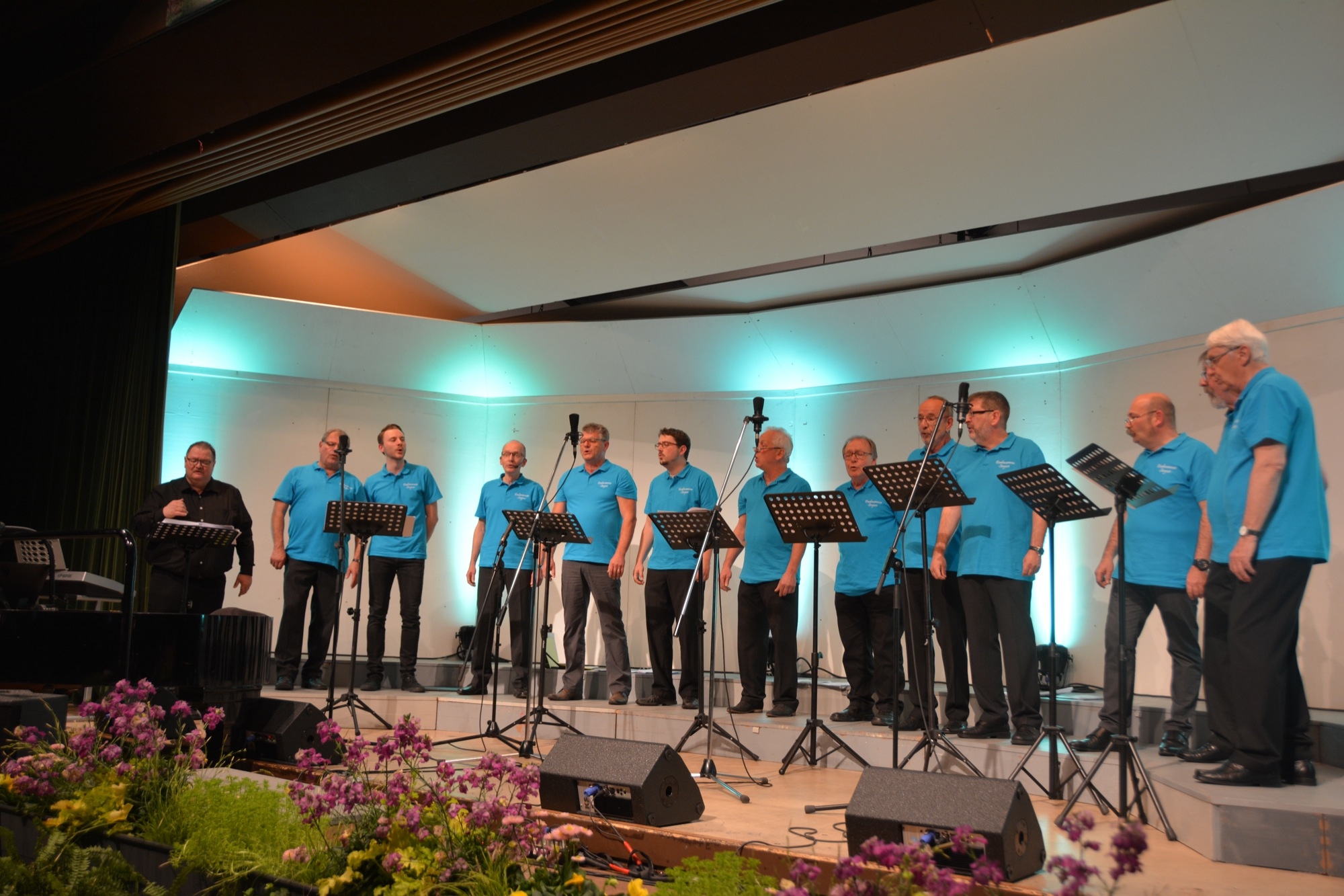 Zwölf ausdrucksstarke, kräftige Männerstimmen und ein engagierter Dirigent – das sind »Die Badewannen-Singers« von Thomas Dreher. Ihre Leidenschaft gehört den Liedern der Wise Guys, Comedian Harmonist oder Bläck Fööss. Und wie ihre großen Vorbilder interpretieren sie mehrstimmigen Vokalgesang, die Begleitmelodien, die Hintergrundgeräusche nur mit ihren Stimmen: »A capella!« Seit zehn Jahren bereichert der Projektchor das Osterkonzert des MGV »Liederkranz« in der Schwarzwaldhalle.