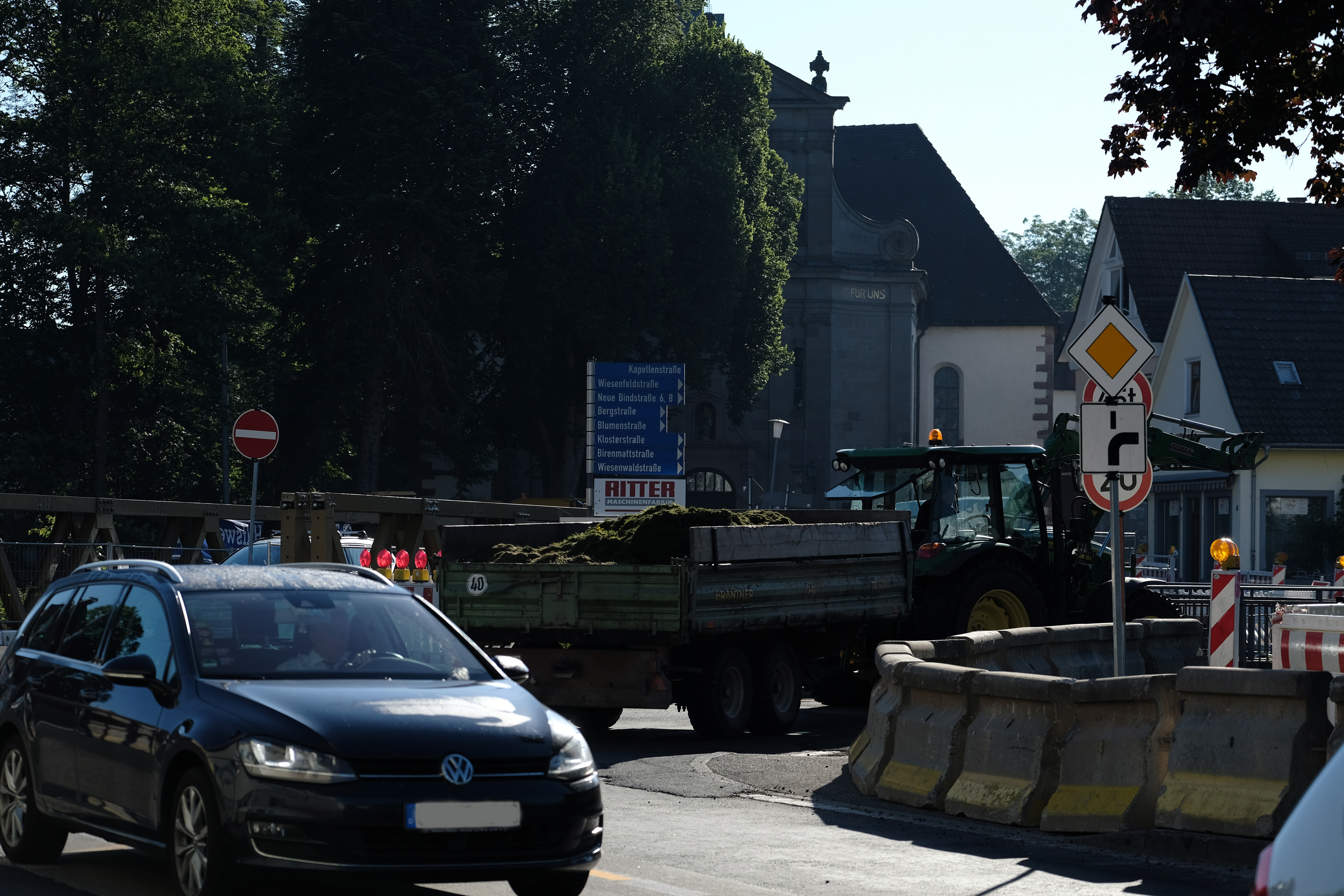 Für Anlieger und Kunden der ansässigen Geschäfte ist es momentan möglich, talab- oder –aufwärts bis jeweils kurz vor die »Kaffeebrücke« zu gelangen. Dort ist jedoch Schluss, denn sie wird ja gleich zum Beginn der Sanierung abgerissen. An der Ampel am Gasthaus »Ochsen« beziehungsweise in die andere Richtung an der Bäckerei Welle-Männle sind die aktuellen Preise der Tankstelle »Schülli« zu sehen, so dass jeder schon dort entscheiden kann, ob er den kleinen Umweg dorthin fährt.