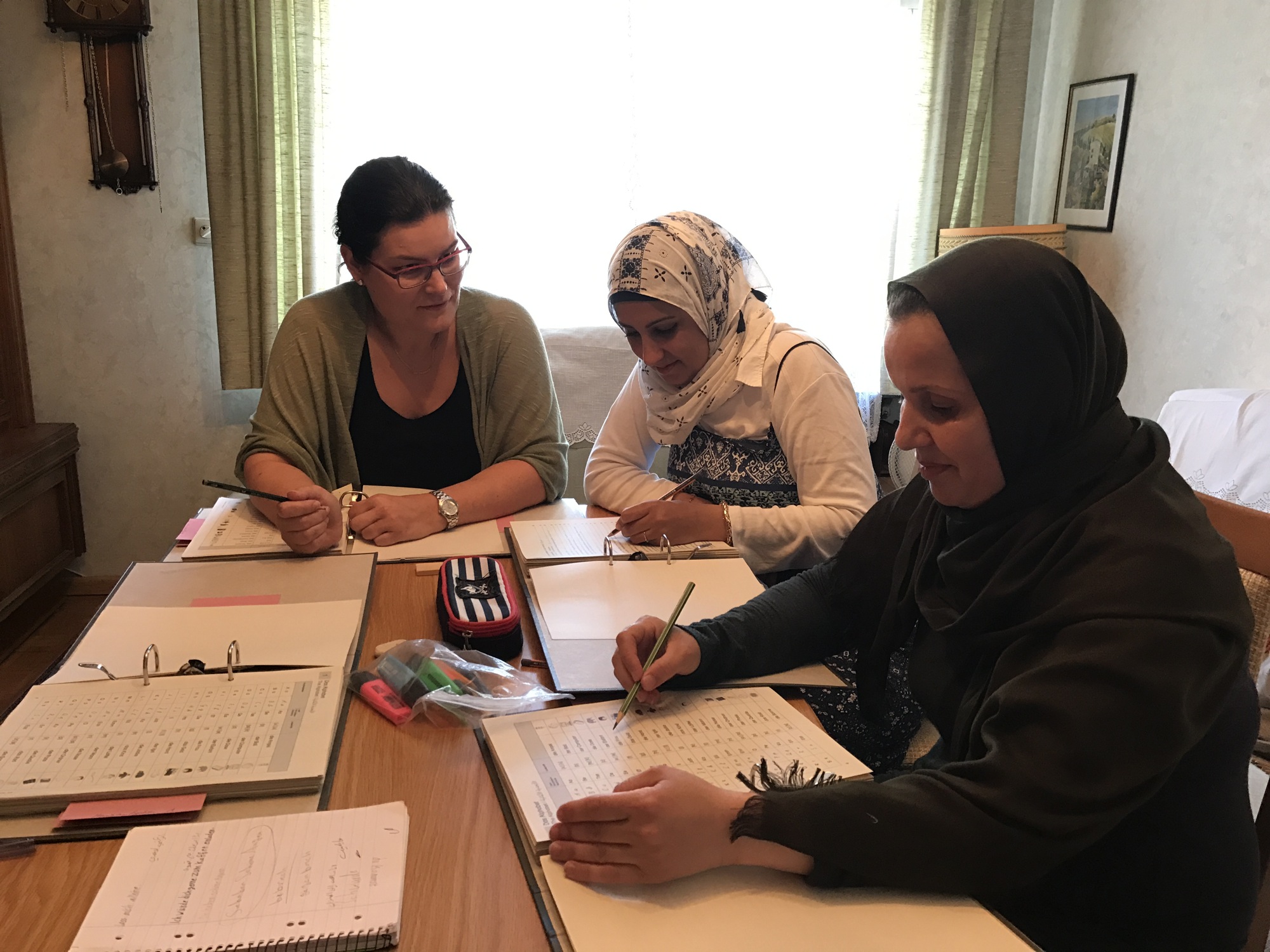 Dieser Kontakt zu Einheimischen ist für viele Flüchtlinge mitunter die einzige Möglichkeit, sich mit der deutschen Sprache vertraut zu machen. Deutschkurse für Flüchtlinge werden derzeit nur in Offenburg angeboten – mit öffentlichen Verkehrsmitteln eigentlich gut erreichbar. Für die Frauen jedoch gestaltet sich das Ganze etwas schwieriger. Die meisten haben ein oder mehrere Kleinkinder, die sie nicht alleine zuhause lassen wollen. Daher haben sich bereits viele ehrenamtliche Mitarbeiter/-innen bereit erklärt, den Flüchtlingen auf privater Ebene Deutschunterricht zu geben.