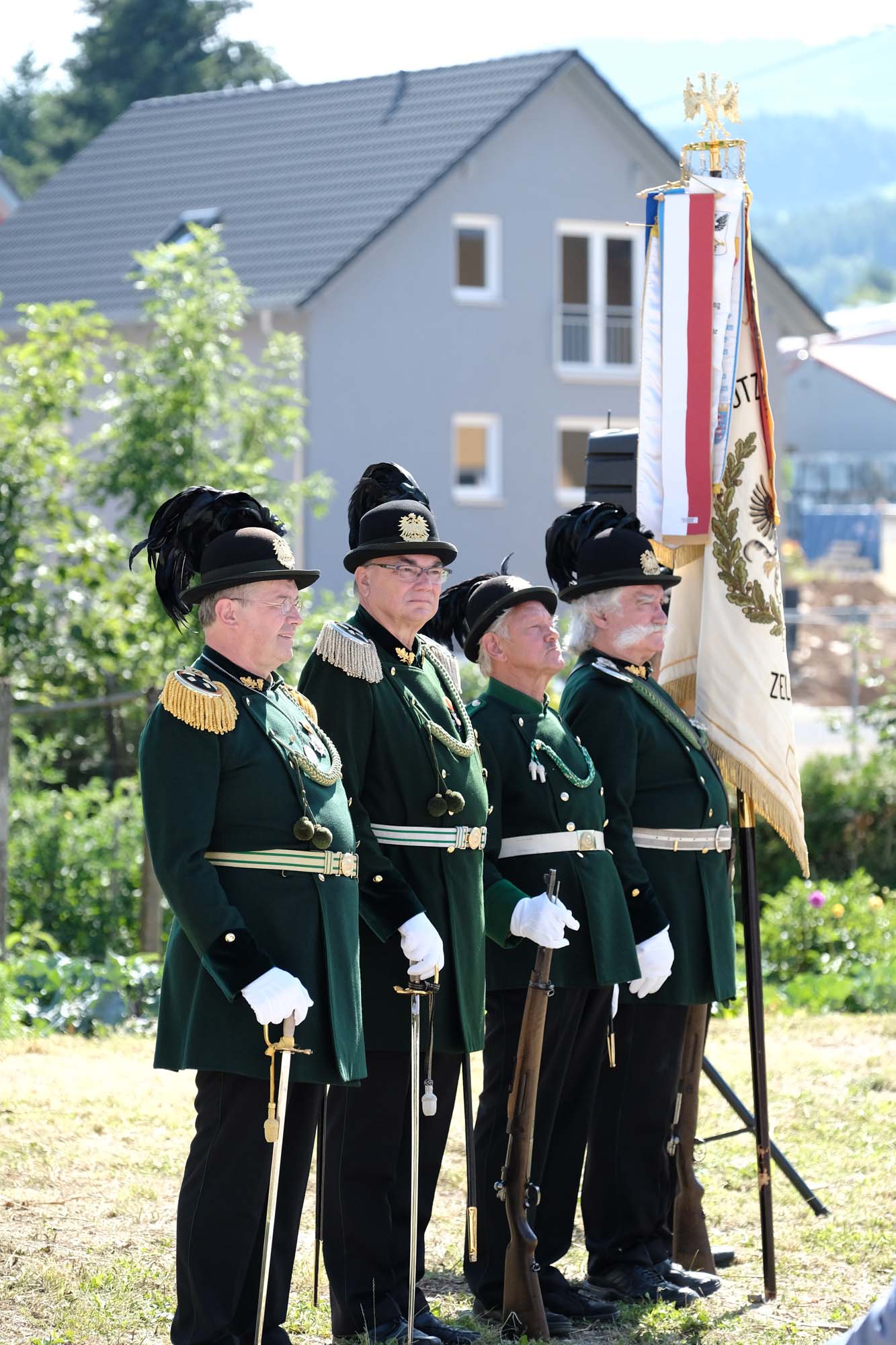 Der gemeinsame Aufmarsch der Abordnungen der Bürgerwehren von Zell und Unterharmersbach, angeführt von den beiden Hauptmännern Paul Gutmann und Marcus Roth, gab dem Festakt einen würdigen Rahmen. Ein Ensemble des Musikvereins Unterharmersbach unter der Leitung von Dirigent Stefan Polap umrahmte den ersten Spatenstich. Beim »Badner-Lied« nach »getaner Arbeit« stimmten alle Gäste, auch Verkehrsminister Herrmann, lautstark mit ein. Für die beiden hochrangigen Landesvertreter gab es schöne Erinnerungsgeschenke von der Zeller Keramik und beide trugen sich in das Goldene Buch der Stadt Zell ein.