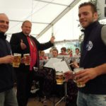 Einen tollen Start erlebte die Kilwi am Samstagabend. Schon beim traditionellen Festbier-Fassanstich durch Ortsvorsteher Hans-Peter Wagner, assistiert vom Festwirt Michael Hirt und dem zweiten FVU-Vorsitzenden Martin Schwarz, Kilwi-Werbechef Sven Bühler sowie dem Kronenbier-Repräsentanten Markus Müller, drängten sich die Besucher. Mit nur einem kräftigen Schlag schlug der Ortsvorsteher routiniert den Spunden raus und den Zapfhahn ein. Dann lief das Bier ohne Pause und gerne standen alle in einer Riesenschlange an, um vom ersten Fass dieser Kilwi ein Glas Freibier zu erhalten. Auch für die Frauen hatte sich diesmal Festwirt Michael Hirt etwas einfallen lassen. Auf seine Initiative hin stiftete die Weinmanufaktur Gengenbach-Offenburg für jede Besucherin ein Glas kühlen Sekts. Eine diesmal besonders große Abteilung der Musikkapelle Unterharmersbach unter der bewährten Leitung von Patrick »Friedel« Friedmann spielte dabei unermüdlich auf und die Besucher schunkelten und klatschen begeistert mit. Von da an herrschte im Festzelt beste Kilwistimmung, die im Anschluss an den Fassanstich von der Partyband »Wilde Engel« mit einem Musik-Programm der Superlative nochmals gesteigert wurde.