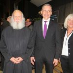 Am Ende seines knapp einstündigen Vortrages lud er die Zuschauer zu einem Abendritual ein. Dazu standen alle von ihren Sitzen auf. Mit meditativen Worten führte er zu einem Rückblick auf den Tag, den jeder Einzelne für sich persönlich vornehmen konnte und beendete das Ritual mit einem alten Abendgebet.