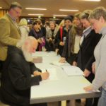 Tosender Beifall der Zuhörer zeigte, wie sehr sie sich von den Ausführungen angesprochen gefühlt haben. Anselm Grün begab sich anschließend zum Büchertisch, wo er auf Wunsch seine Bücher mit Unterschrift signierte.