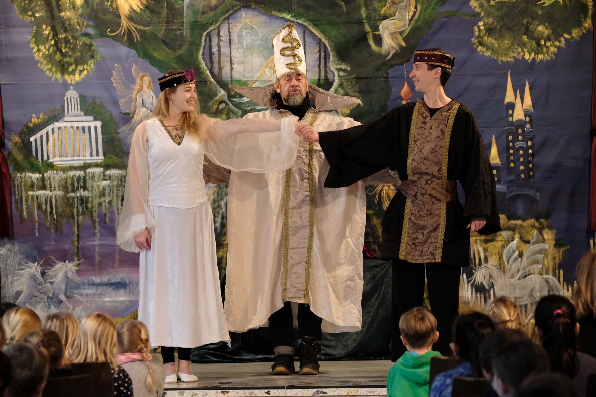 Die Geschichte von Prinz Tamino und seiner Pamina, von Sarastro und der Königin der Nacht, Papageno und Papagena zog die kleinen Zuschauer vom ersten Moment in ihren Bann. Die geteilte Welt, der schüchterne Prinz, eine in dieser Inszenierung sehr selbstbewusst angelegte Prinzessin, Liebe, Furcht und Zusammenhalt – ein märchenhafter Stoff, wie gemacht um junge Zuschauer an das vermeintlich sperrige Thema Oper heranzuführen. Schließlich waren sie nicht nur dabei, sondern auch mittendrin. Die Opernsänger weiteten den Spielraum auf die gesamte Pausenhalle aus, das Publikum inklusive. Einige Kinder durften sogar auf der Bühne mitmachen, und als Tamino seine Prüfung bestehen musste, halfen alle mit, den Wind, den Donner, das Wasser und das Feuer darzustellen. Natürlich war die Aufführung stark gekürzt und auch die vielschichtige Konkurrenz von Gut und Böse im Original wurde in das Streben nach einem harmonischen Miteinander umgewandelt. Sprechpassagen trieben die Handlung voran, anschließend leiteten ausgewählte Musik- und Gesangsstücke wieder in die Welt der klassischen Musik.