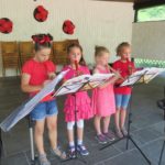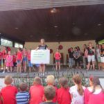 Das Eltern-Kindspiel ist der traditionelle Höhepunkt und Abschluss des Schulfestes. Den Teilnehmern auf der Bühne werden von den Kindern im Publikum Melodien bekannter Lieder vorgesummt, die diese dann erraten müssen. Bei einigen Volksliedern für die Eltern halfen Erwachsene beim Summen mit. Eine spannende Geschichte, da beide Gruppen lange gleichauf lagen. Am Ende waren die Kinder die Gewinner. Als Preis gab Rektorin Alst bekannt, das die ganze Schule am vorletzten Schultag zum Herrenholz wandert und danach zu einem Grillfest auf dem Hof der Familie Schwarz eingeladen ist.
