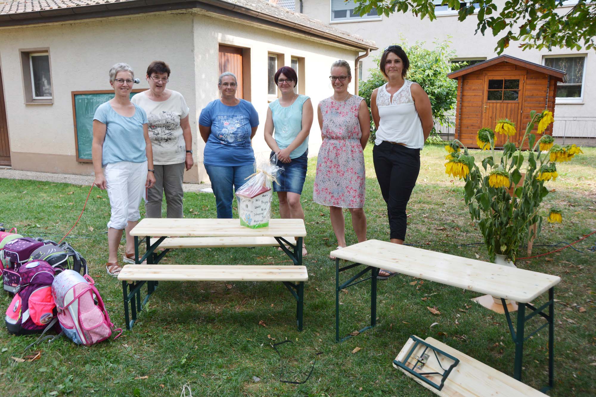 Als besonderes Dankeschön überreichten die Elternvertreterinnen ein Vogelhäuschen, verziert mit den Namen der Schulanfänger, und zwei Sitzbänke an Leiterin Barbara Schmidt. Seit diesem Frühjahr hat der Kinderkarten Kleine Wolke ganz in der Nähe am Eckwald ein eigenes Waldhaus, das von den Kindern einmal wöchentlich besucht wird.
