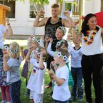 Im bunt geschmückten Garten des Kindergartens wurde bei herrlichem Sommerwetter eine WM-Grillparty gefeiert.