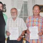 Markus Wacker bedankte sich bei Franz Schultheiß und Erhard Eble mit einem kleinen Präsentkorb für den Einsatz bei der Bahnpflege. Lobende Worte richtete der 1. Vorsitzende an Richard Schöner, welcher Jahrzehnte lang in der Vorstandschaft viel für den Verein geleistet hat, und an Fabian Boschert für die Jahre als Beisitzer und 2. Sportwart. Sie freuten sich ebenfalls über einen Präsentkorb. Markus Wacker wurde von Axel Schondelmaier für 30 Jahre Mitgliedschaft im Verband geehrt. Günter Lehmann und Josef Schwendemann durften die goldene Ehrennadel samt Urkunde für vierzig Jahre aktive Mitgliedschaft im SKC Unterharmersbach entgegen nehmen. Ergänzend zur Ernennung zum Ehrenmitglied im letzten Jahr bekamen Franz Schultheiß und Erhard Eble noch den Ehrenteller für die Ehrenmitgliedschaft überreicht.