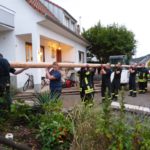 Eine Abteilung des Unterharmersbacher Musikvereins spielte immer wieder aufmunternde Weisen, während der Maien aufgestellt wurde. Was für die von Frauenpower unterstützten tapferen Mannen der Feuerwehr ob der Höhe des Baumes keine einfache Aufgabe war. »Das ist Physik, das ist nicht ohne«, lachte Ludwig Schütze angesichts des 16-Meter-Maien, »ich weiß es zu schätzen, das ist kein kleines Bäumle!« Was es auch keinesfalls sein durfte. Schließlich war auf jeden Fall wichtig, dass man den Maien im benachbarten Zell sieht, wie einer der Verantwortlichen frotzelnd verlautbarte.