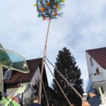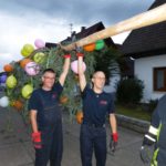 Ohne jedoch zu wissen, was im weiteren Verlauf des Abends nun genau passieren wird – bis auf den Umstand, dass ihm ein Maienbaum gestellt werden sollte. Der rollte denn auch bald an, von einer Abteilung der Feuerwehr geschlagen und mit unzähligen Luftballons bunt geschmückt.