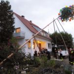 »Ich bin tief beeindruckt«, verkündete der Beschenkte, »das ist kein Maien mehr, das ist ja ein richtiges Gerät, das muss man erst mal aufgestellt kriegen – Respekt«. Er freute sich über die Zahl der anwesenden Vereinsvertreter, Verwandten und Nachbarn und animierte sie zum herzhaften Zugreifen bei Speis und Trank.