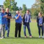 Nach diesem offiziellen Teil wurden nun Fotos gemacht, um diesen besonderen Tag festzuhalten. Hierfür war die Fotografin Sarah Müller von der Zeller Fotostube Sarah engagiert worden. Und sie hatte sich etwas Besonderes ausgedacht. Oben vom hohen Tribünendach herunter machte sie ein großes Bild der gesamten FVU-Familie mit allen Mannschaften als Erinnerung an diesen Tag.
