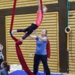 Eine spektakuläre Vorstellung boten die Kinder am Trapez und am Vertikaltuch. Mit Kraft, Mut und Geschicklichkeit präsentierten sie hoch über den Köpfen der Zuschauer ihre atemberaubenden Übungen.
