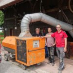 Mit vor Ort war Chefin Sabine Koppert, die mit ihrer großen in vier Jahrzehnten erworbenen Erfahrung die Arbeiten leitete und mit Hand anlegte, wenn es notwendig war. So bestrich sie die behandelten Teile zusätzlich mit einer Borsalz-Lösung, um künftigen Befall zu verhindern. Als ausgewiesener Fachmann behandelte Thomas Knüppel Einzelbalken und Gebälkabschnitte mit einer speziellen Borsalz-Mischung, die er in vorhandene Löcher einspritzte. Mit im Dauereinsatz war auch Mitarbeiter Martin Benz.