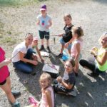 Weiter ging es am Wald entlang zur Walderholungsanlage Herrenholz. Hier warteten schon kühle Getränke und Kuchen auf alle. Nach der ersten Stärkung konnte es dann los gehen mit dem Basteln. Dieses Jahr wurden an einen Ast kleine Flaschen gehängt, in die dann die gesammelten Blumen kamen. Nachdem die Kinder im Wald gespielt und getobt hatten, wurden am Feuer noch Würste gegrillt. Gemeinsam ging es später wieder zurück zum Treffpunkt. Die Kinder und Eltern hatten auch dieses Jahr wieder viel Spaß bei der Familienwanderung.