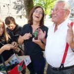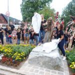 Was lange währt wird endlich gut. Und in der Tat: Bei hochsommerlichen Temperaturen und blauem Himmel wurde ein Fest gefeiert, das man nie vergisst. Ja der Hambacher Himmel hing am Samstag voller Geigen. Die Eckwaldhexe persönlich als Stammmutter der Hambacher Hexen hatte sich eingefunden, um ihren künftigen Platz am oberen Eingang auf dem sechs Tonnen schweren Granitstein einzunehmen.