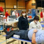 Für Mitglieder der FVU-Handballabteilung (unten) war es kurz vor Weihnachten eine Ehrensache, sich mit einer Blutspende in den Dienst der Allgemeinheit zu stellen.