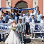 Auch die FVU-Handballer ließen es sich nicht nehmen, Chiara und Steffen Stehle zur Hochzeit zu gratulieren. Das Brautpaar, die Sonne, der Pastor, die Handballer und alle anderen Gäste strahlten um die Wette, als hätte Steffen Stehle gerade den Torhüter beim Siebenmeter getunnelt. Das Schlitzohr der FVU-Handballer gab seiner Tennis-Queen Chiara das Ja-Wort. So treu wie Steffen dem FVU-Handball ist und hoffentlich bleiben wird, soll er es auch seiner Chiara sein und man freut sich, beide mit Hund Cooper noch viele Jahre in der Hombe-Arena begrüßen zu dürfen!