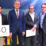 Seit 40 Jahren sind Bruno Sum, Jürgen Himmelsbach, Christoph Kasper und Manfred Maier im Betrieb tätig. Bürgermeister Günter Pfundstein überreichte die Ehrenurkunde des Landes Baden-Württemberg, unterschrieben vom Ministerpräsidenten Winfried Kretschmann. „Die Urkunden werden von der Stadt beantragt und ich darf sie überreichen“, erklärte Pfundstein zu dem Procedere. Er bezeichnete es