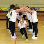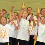 Der Auftritt der Klasse 2a beginnt mit einer Überraschung: Nach der Musik vom Film „König der Löwen“ hebt Coach Osman ein Kind sehr hoch – dem Original nachempfunden. Einige Zweitklässler waren als Löwen geschminkt. Es beginnt mit einem tänzerischen Durcheinanderlaufen, was den Kindern sichtlich Spaß macht. Dann liegen auf einmal alle Mädchen und Jungen still auf dem Boden und die Zuschauer fragen sich: Was kommt denn jetzt? Tatsächlich wagen sich einige Kinder an Elemente des „Break dance“ und machen Verrenkungen auf dem Boden. Dazu brauchen sie nur wenig Anleitung von ihrem Coach. Turnerische Elemente wie Rad schlagen oder Spagat machen ihren Auftritt zu einer vielseitigen Show, für die sie viel Applaus vom Publikum erhalten.