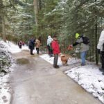Tage später teils als stark vereiste Weg-Piste mit großer Rutschgefahr. Wohltuend waren die gegenseitige Fürsorge und Hilfsbereitschaft beim Überwinden der vereisten Flächen. Viele spontane Kavaliere haben so zum guten Gelingen und zum reibungslosen Ablauf der Mammut-Veranstaltung beigetragen, ganz nach dem Motto „Gemeinsam sind wir stark“. Am Ende der Tour säumten teils bizarre Eis-Stalaktiten und Stalagmiten den Waldrand.