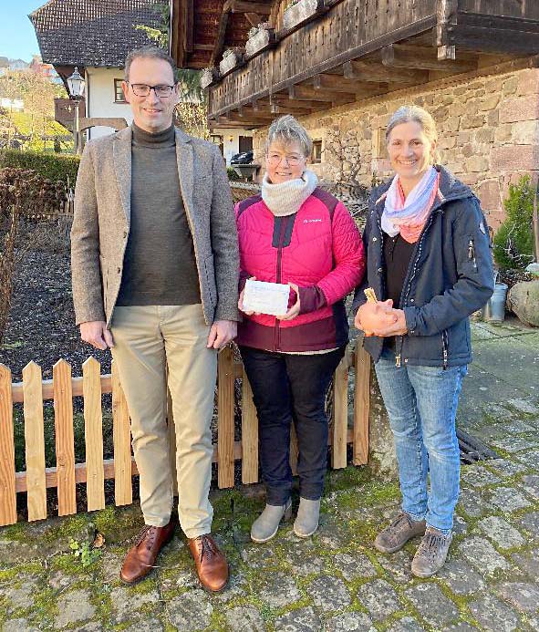 Mit Waffeln und Striebele sammelten zwei Gemeinderätinnen 1.400 Euro für die Wassertretstelle im Jedensbachtal. Bürgermeister Weith zeigt sich begeistert: „Das ist vorbildlich und sollte Schule machen!“