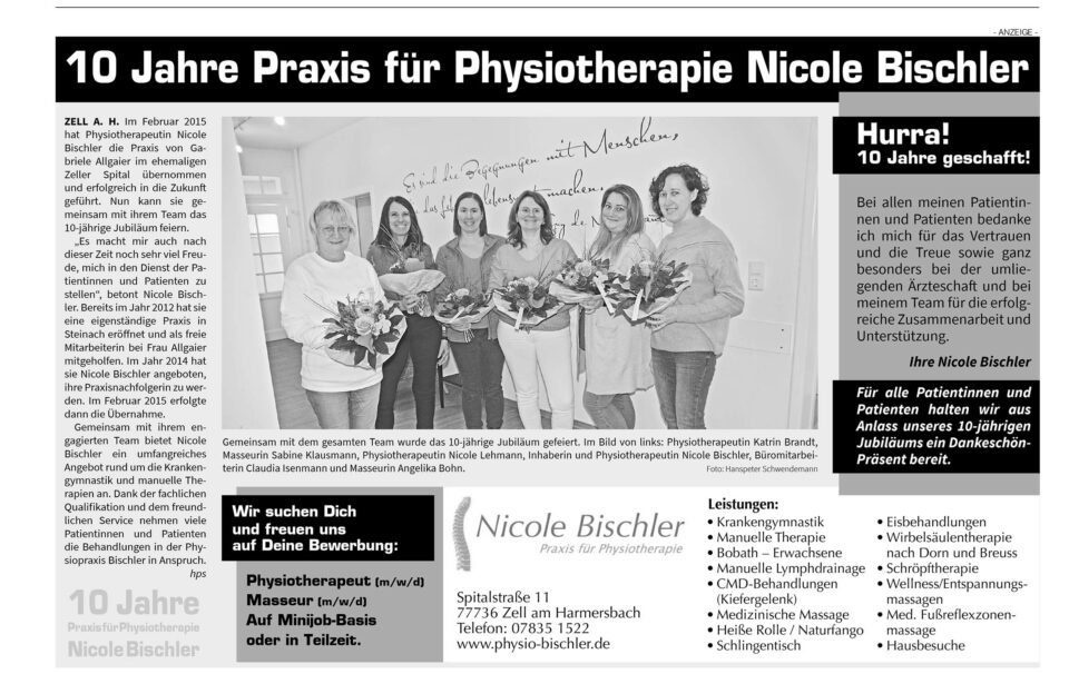 10 Jahre Praxis für Physiotherapie Nicole Bischler