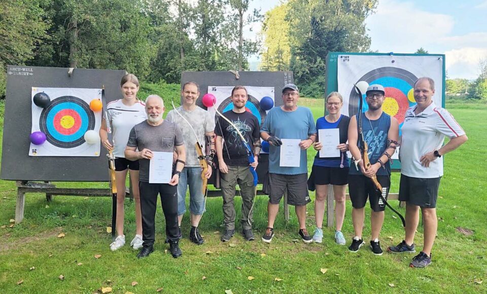 Gut besuchter Einsteigerkurs beim Bogenschützenclub Zell. Die Teilnehmer lernen die Grundlagen und Feinheiten dieser spannenden Sportart kennen.