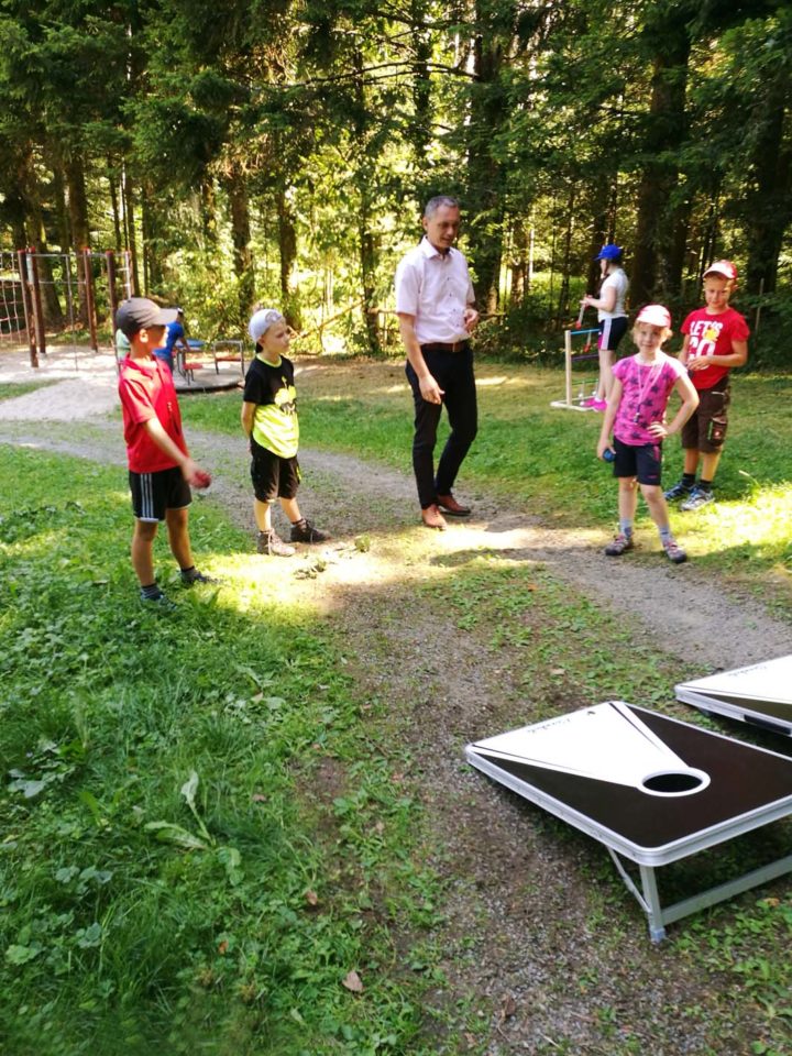 Am Montag startete die Stadtranderholung der AWO auf der Gehrmatt. Wie immer warten auf die Kinder zwei Wochen lang viele tolle Aktionen. Bürgermeister Günter Pfundstein stattete dem Ferienlager einen Besuch ab.