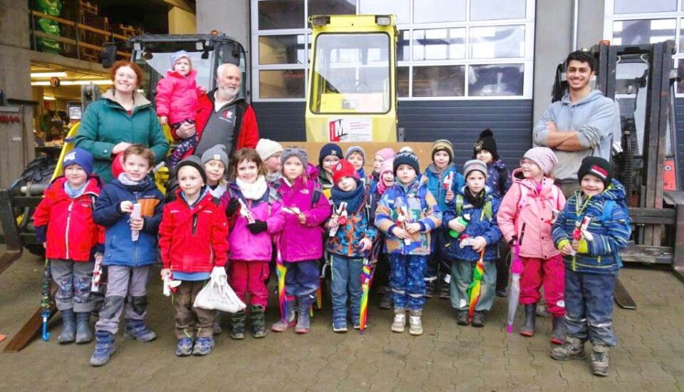 Die Schulfüchse des Kinderhauses „Sonnenblume“ besuchen das Bauunternehmen Lehmann in Oberharmersbach.