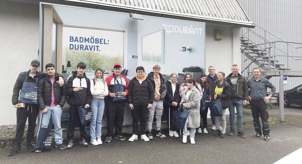 Interessante und praxisnahe Eindrücke hat die Klasse VABR (Vorqualifizierungsjahr Arbeit/Beruf) zusammen mit ihren technischen Lehren im Fach Holztechnik Michaela Fey und Christoph Isenmann bei einer Exkursion zu Duravit/Möbelfertigung in Schenkenzell gesammelt.