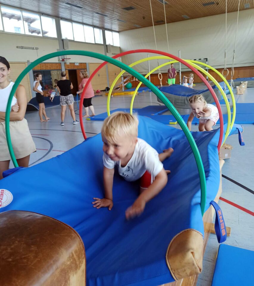 Die Jüngsten tobten sich im Rahmen des „Biberstarken Ferienprogramm“ auf dem Turn-Planeten aus.