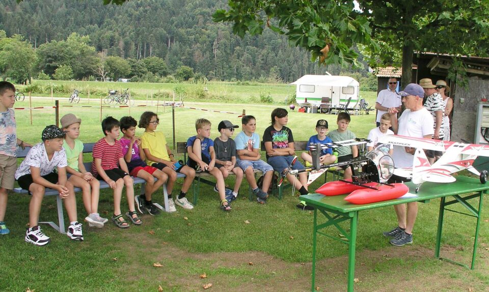 13 Kinder waren im Rahmen des Kinderferien-Programms der Gemeinde Biberach auf dem Modellflugplatz der Modellfluggruppe „Grashüpfer“ zu Gast. Die Kinder wurden um 13 Uhr von ihren Eltern gebracht und konnten sich auf einen erlebnisreichen Nachmittag freuen.