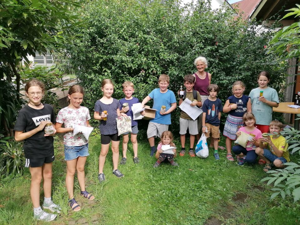 Zwölf Kinder gingen durch den Kräutergarten von Marita Echle. Hier konnten Kräuter von A wie Alant bis Z wie Zinnkraut beschnuppert werden.