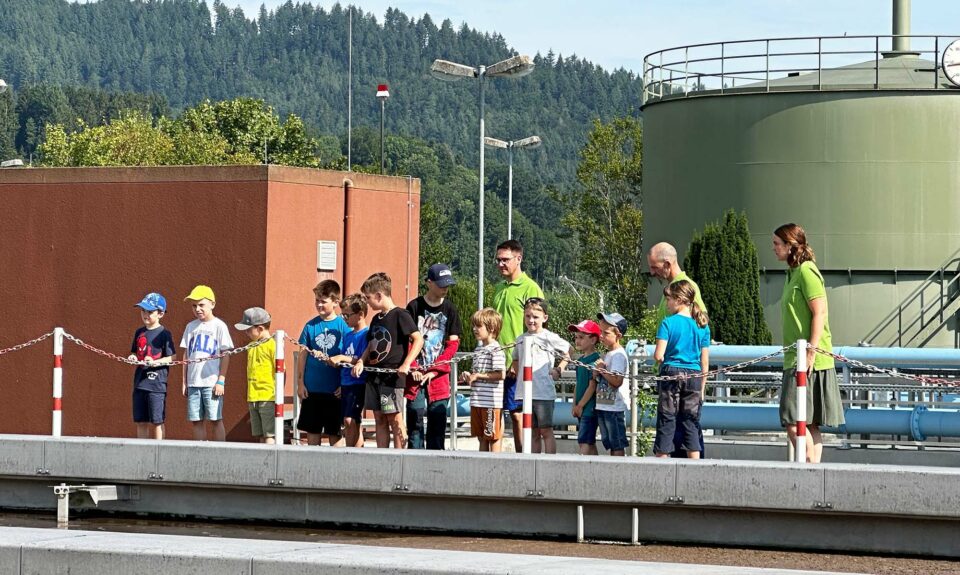 Ferienkinder erkundeten die mechanischen und biologischen Reinigungs stufen. Auch den Faulturm mit seinen 78 Stufen durften die Kinder erklimmen.