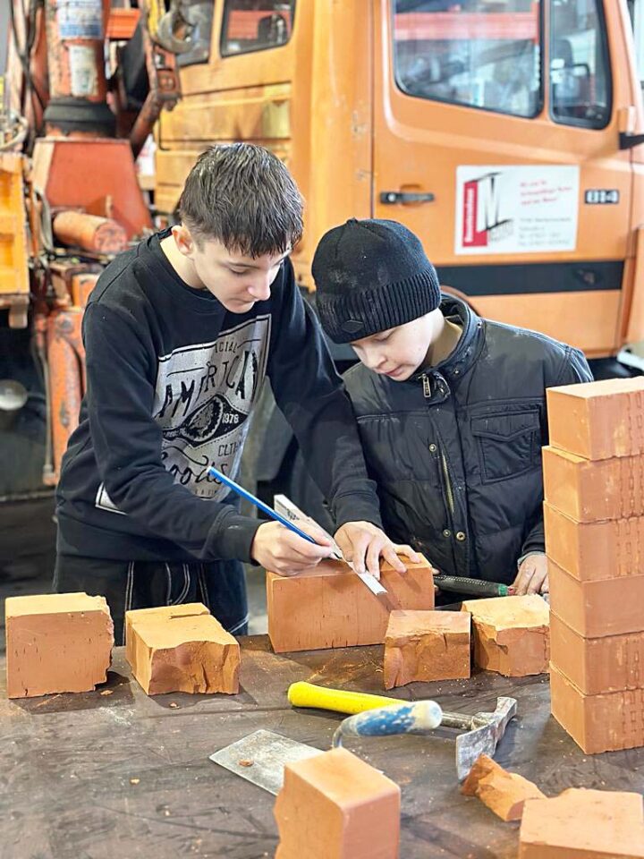Für einen Tag hat die Klasse W8a des Bildungszentrums „Ritter von Buß“ praktische Erfahrungen im Maurer beruf gesammelt.