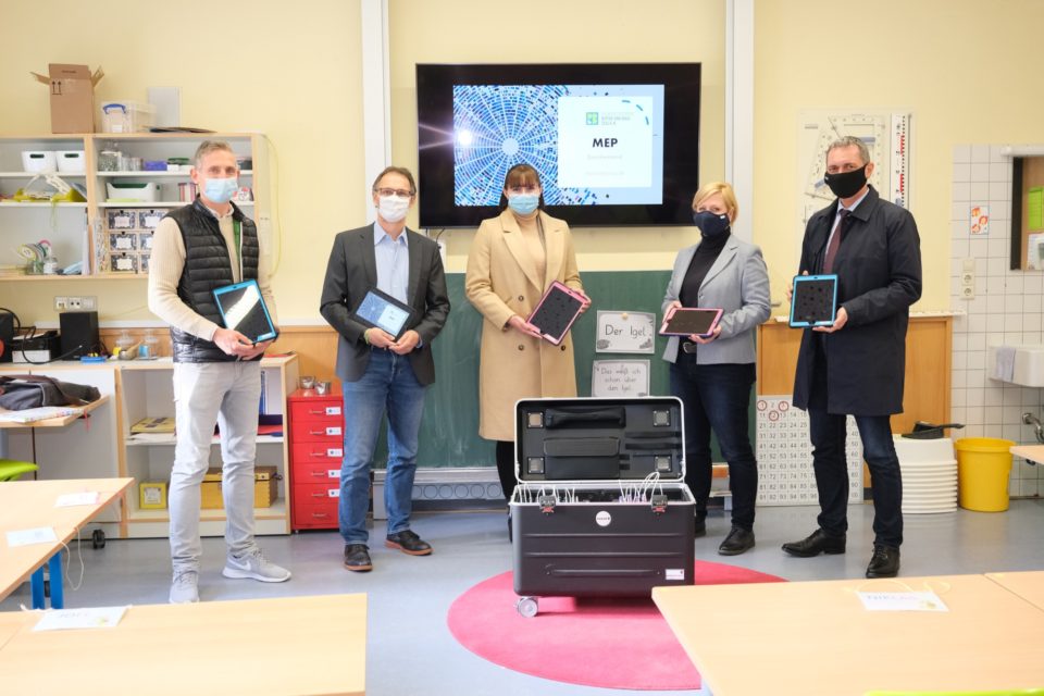 In zwei großen Koffern bewahrt die Zeller Grundschule einen speziell in Coronazeiten großen Schatz auf: 33 Tablets, die in den Klassen bereits zum digitalen Lernen eingesetzt werden. Falls es wieder zu Fernunterricht kommen sollte, können die Geräte auch verliehen werden. Die Zeller Lions und der Förderverein des Bildungszentrums haben die passenden Schutzhüllen finanziert.