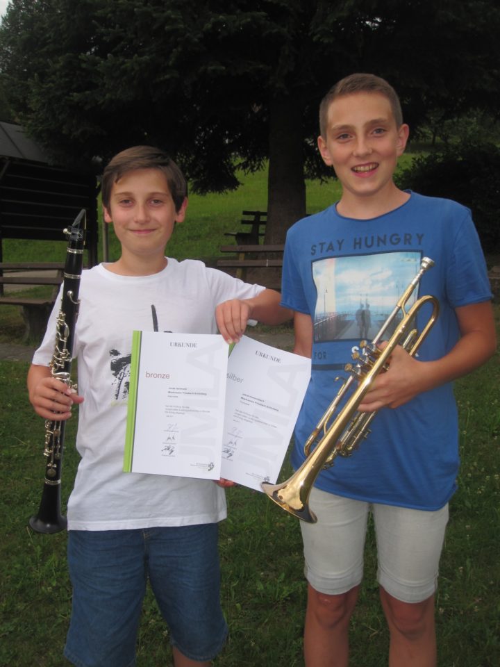 Jungmusiker Jonas Isenmann (links) hat vor einigen Wochen an der Klarinette sein Bronzenes Leistungsabzeichen absolviert und darf ab sofort im großen Orchester mitspielen. Jungmusiker Jakob Himmelsbach (rechts) an der Trompete hat das Leistungsabzeichen in Silber bestanden. Am vergangenen Dienstag wurde ihnen die Urkunde sowie die Nadel überreicht. Das lange Üben vom praktischen und theoretischen Teil […]