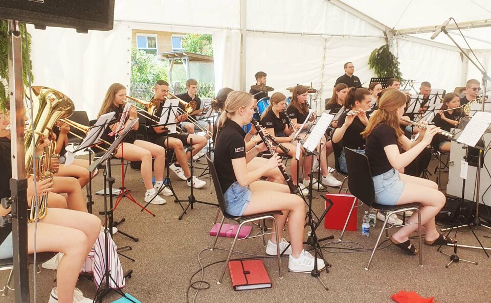 Jungmusiker musizierten zum Jubiläum bei strahlendem Sonnenschein